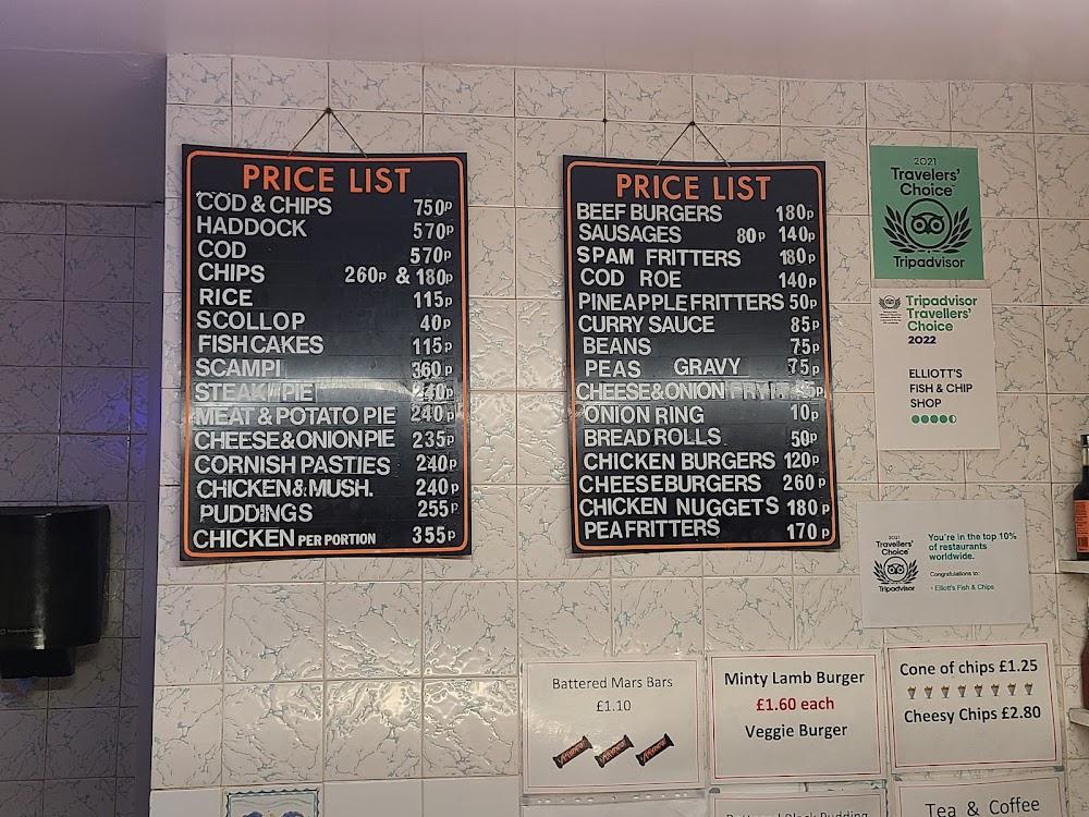 Located on Commercial Road in Tideswell, Elliotts Fish & Chips is a beloved takeaway spot renowned for its classic British cuisine. The village itself boasts charm with its limestone architecture and friendly locals, attracting both tourists and residents. Just a few miles from the stunning Peak District, it's the perfect place to grab a delectable meal after exploring the beautiful countryside. The eatery provides various service options, including takeaway, delivery, and dine-in, accommodating all needs. The wheelchair access throughout the restaurant and parking facilities ensures a welcoming environment for everyone. This chippy often draws a crowd, so expect a queue, especially during lunchtime and dinner rushes. Those who wish to avoid the wait can easily make a reservation. With a reputation for quality and a vibrant community feel, Elliotts is more than just a fish and chips shop; it’s a local institution.